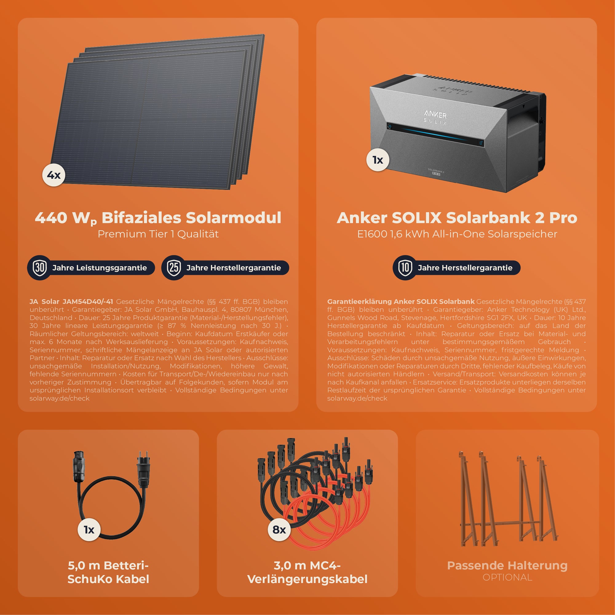 Solarway ist eine von Ingenieuren geführte deutsche Marke, die sich auf den Ausbau von erneuerbaren Energien spezialisiert hat. Daher können wir Deinen Bedarf rund um das Thema Solar/Photovoltaik bedienen.